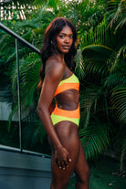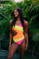 Color Block One Shoulder Cut Out One Piece - Popsicle
