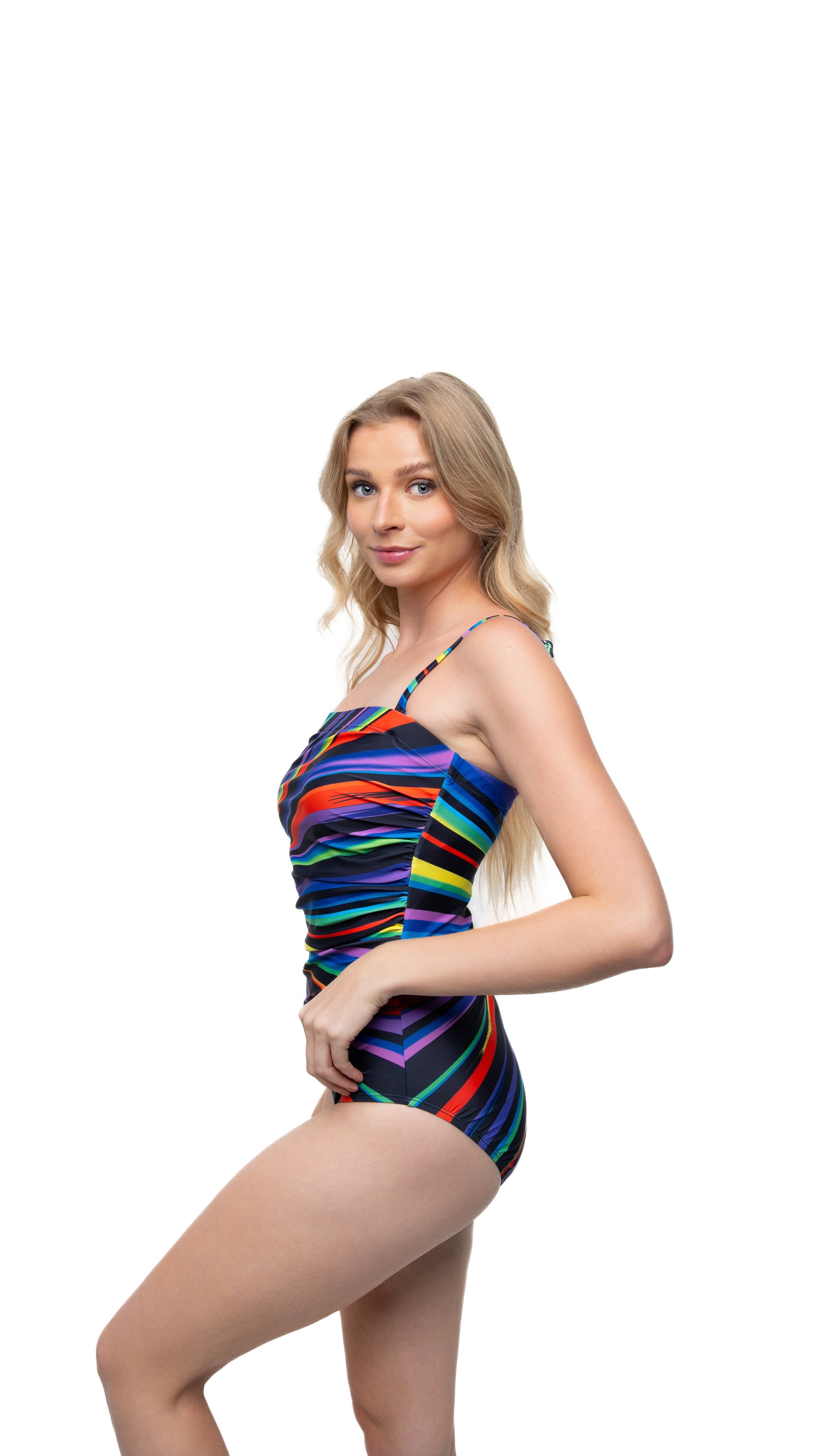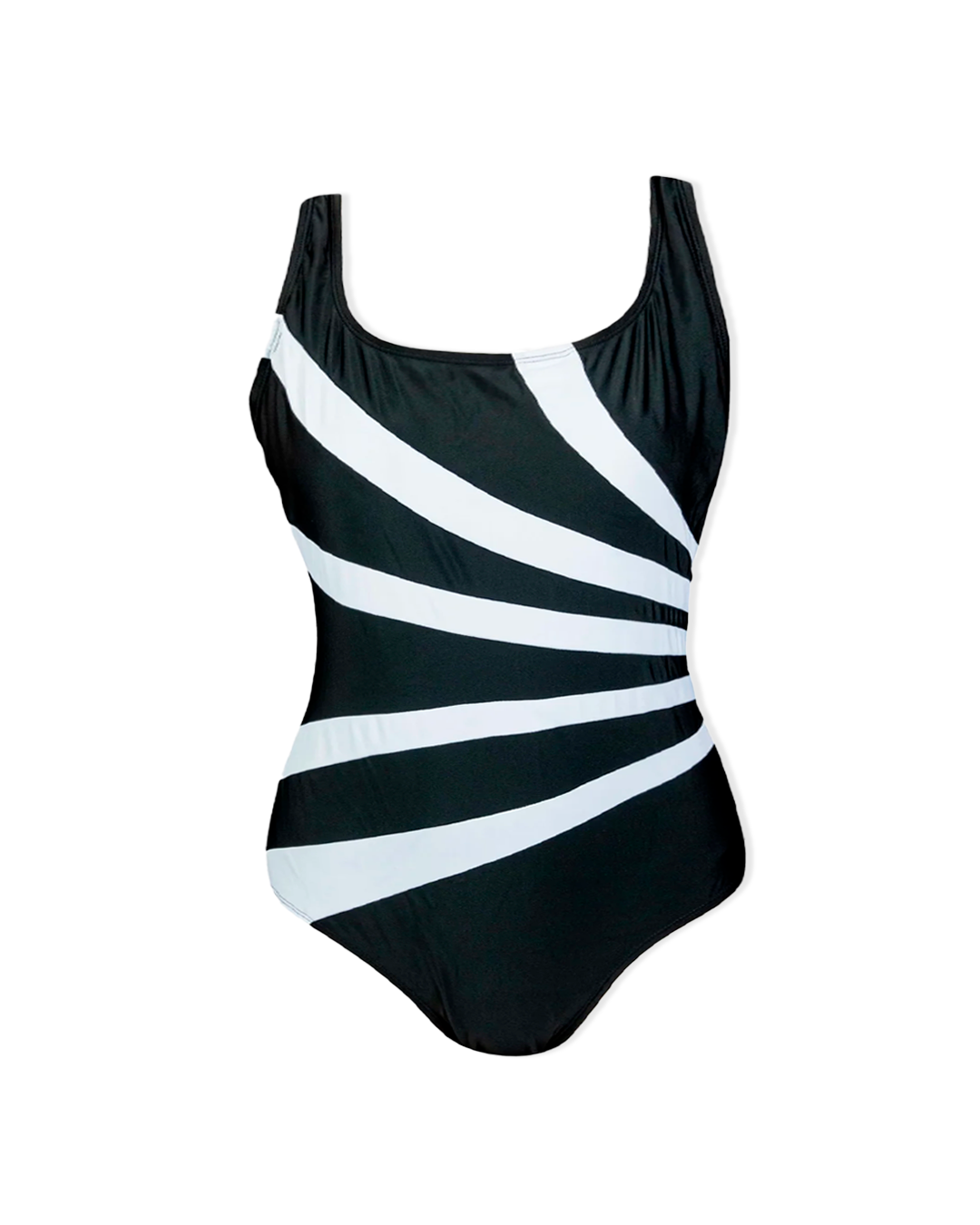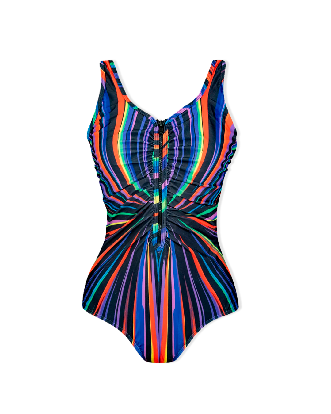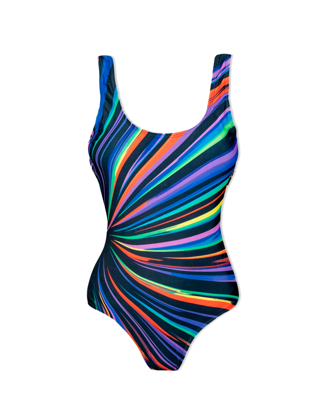 Color Block One Shoulder Cut Out One Piece - Popsicle