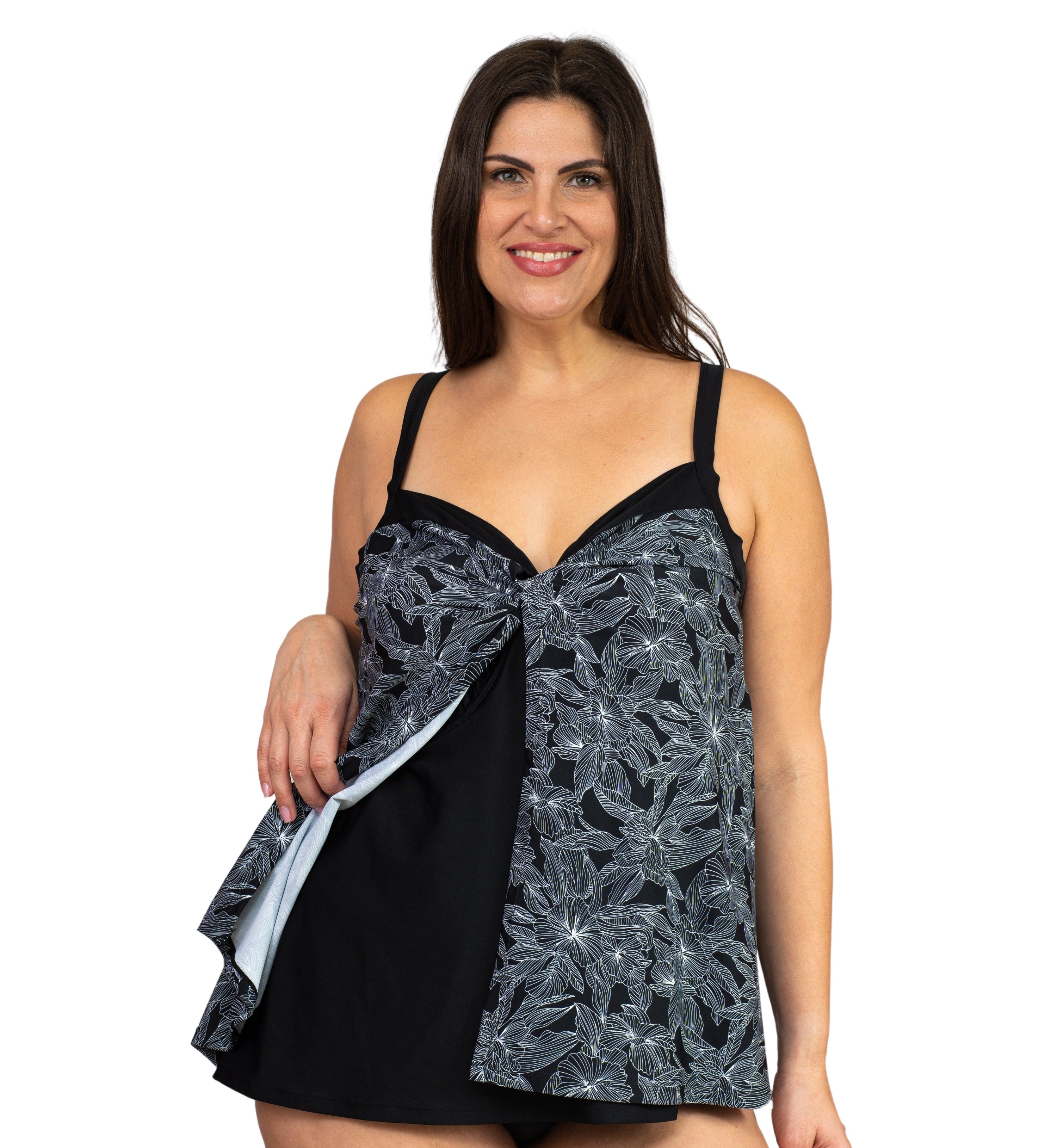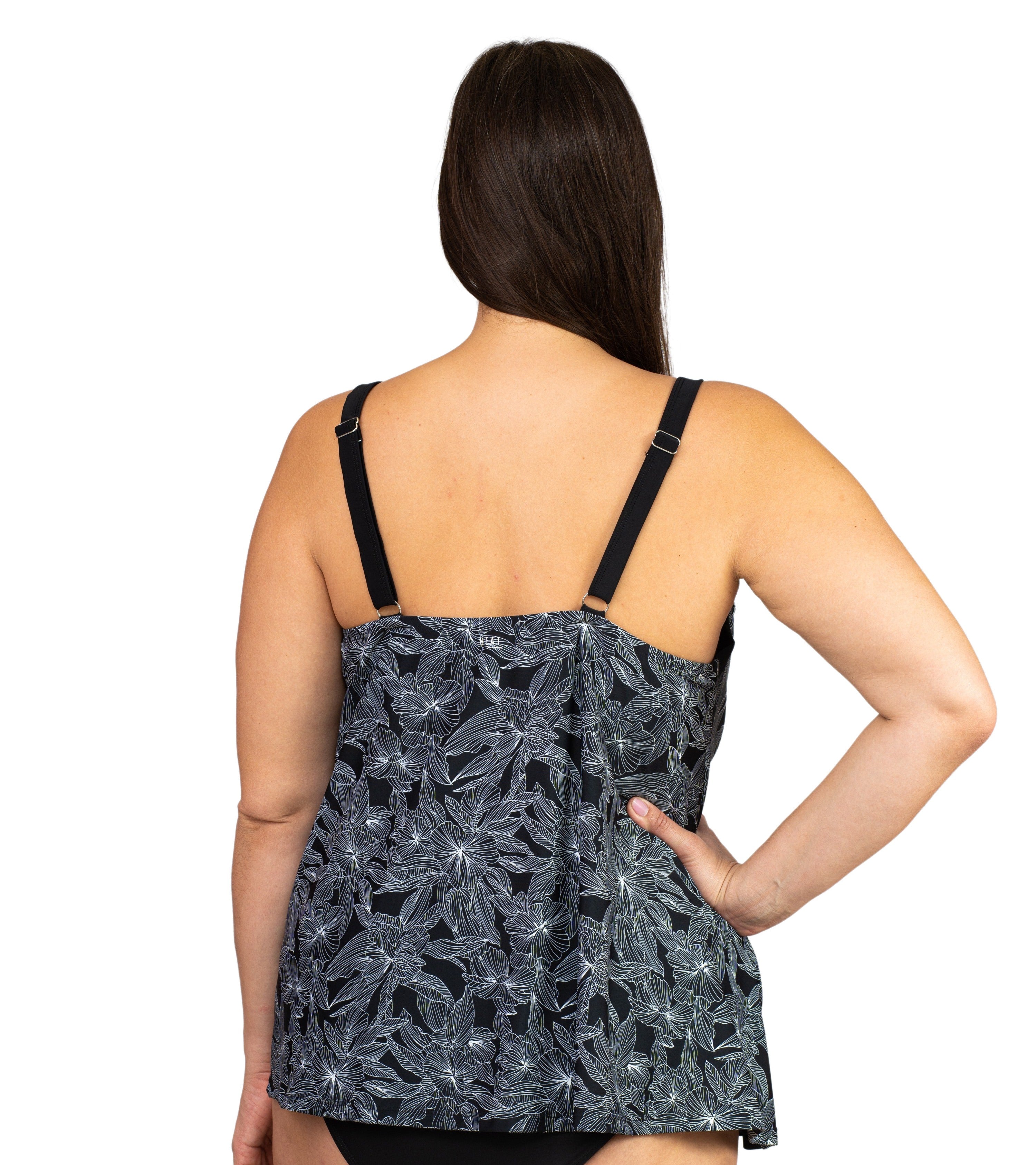 Midnight Flower Plus V/ Neck Underwire Flyaway Tankini