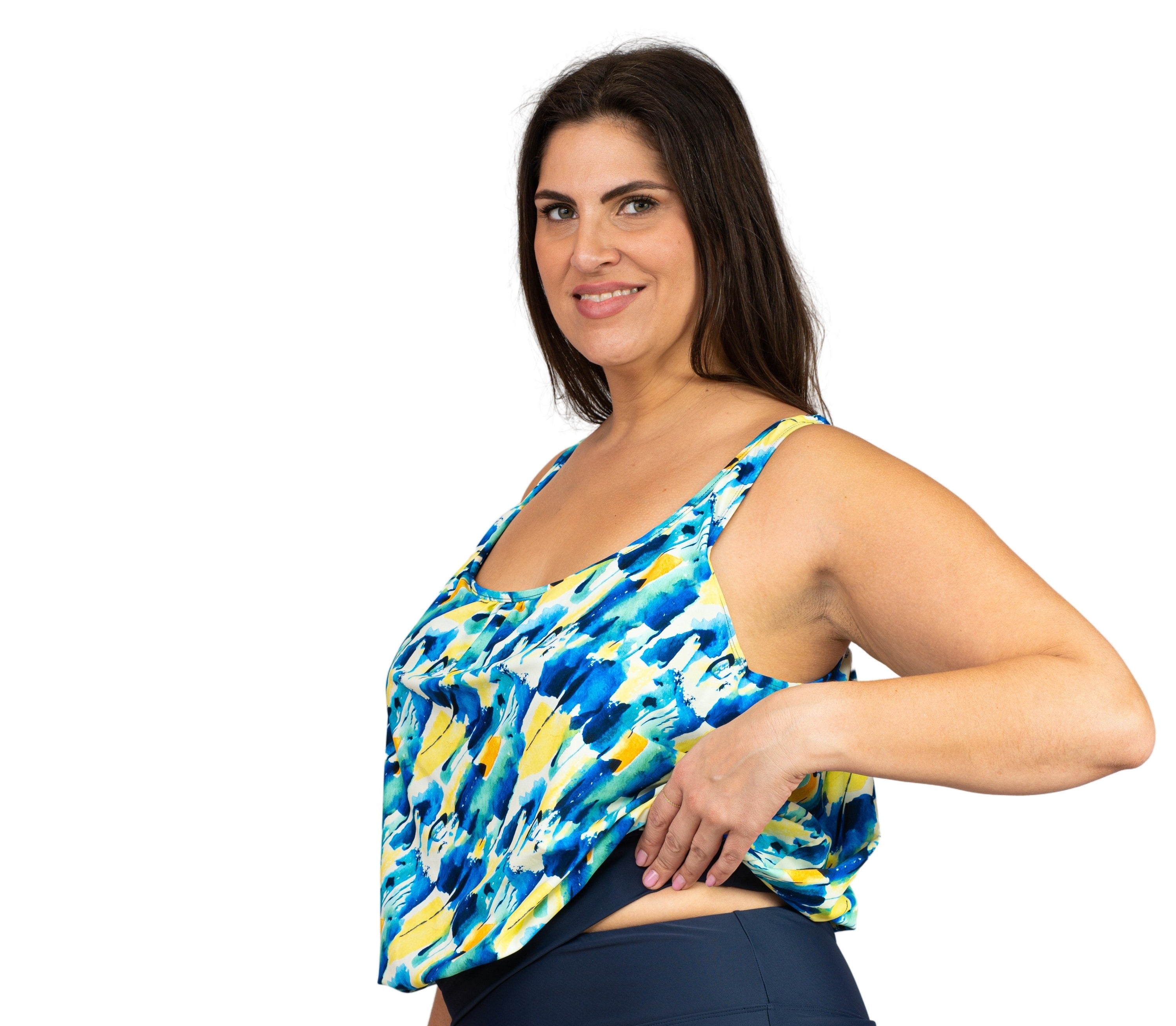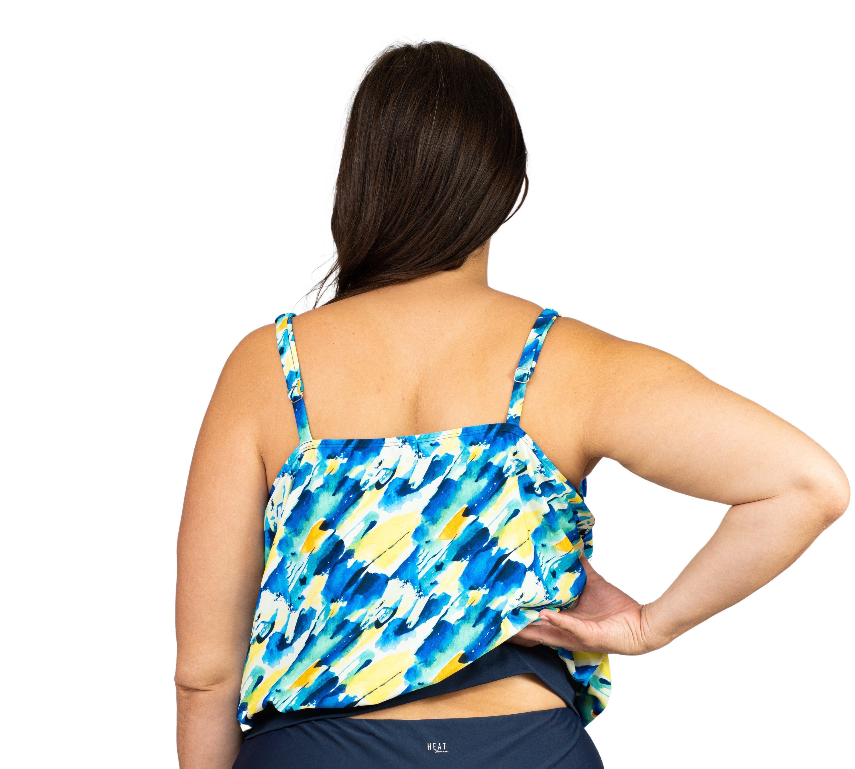 Shirred Neck Blouson Tankini Plus