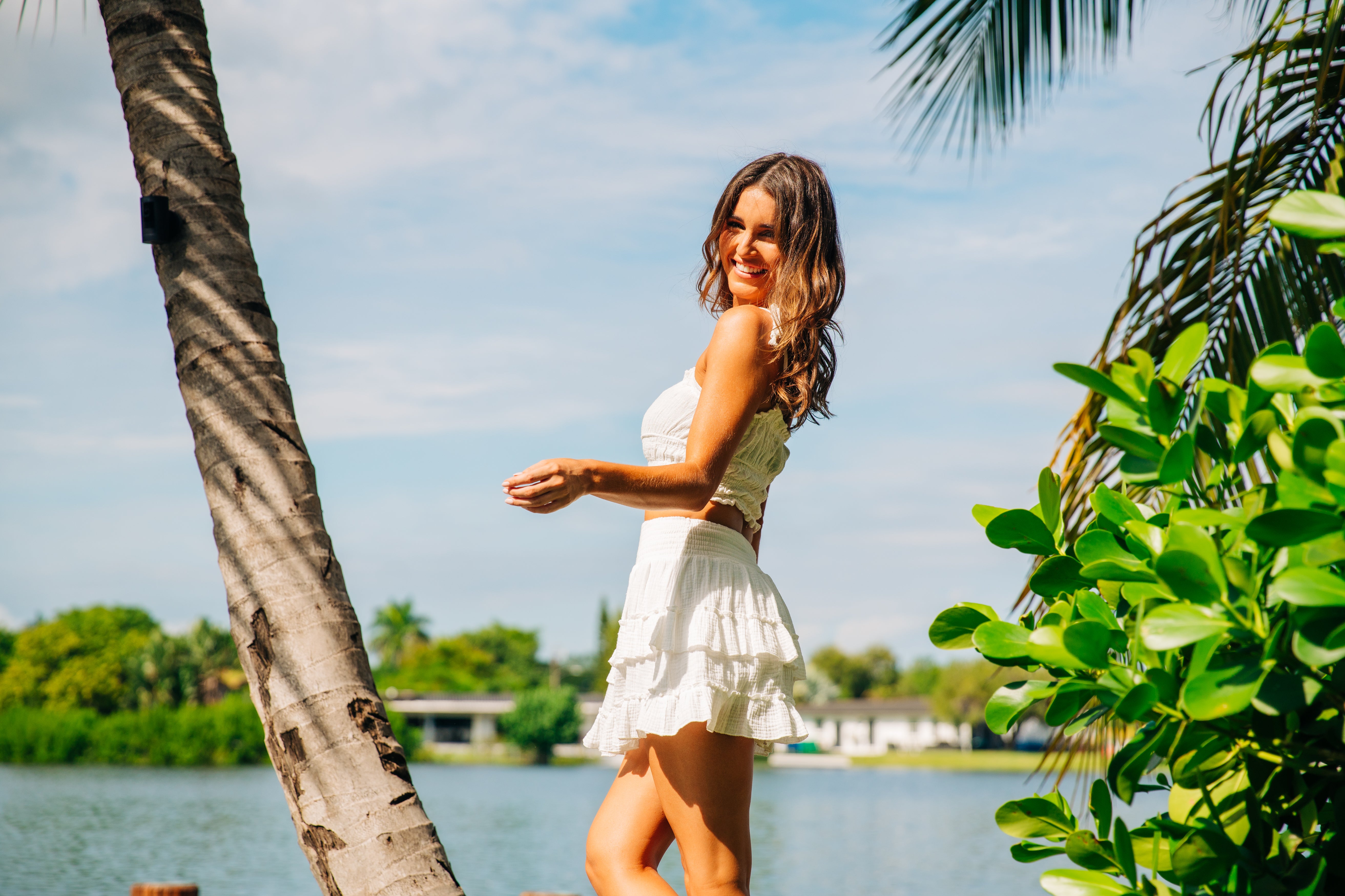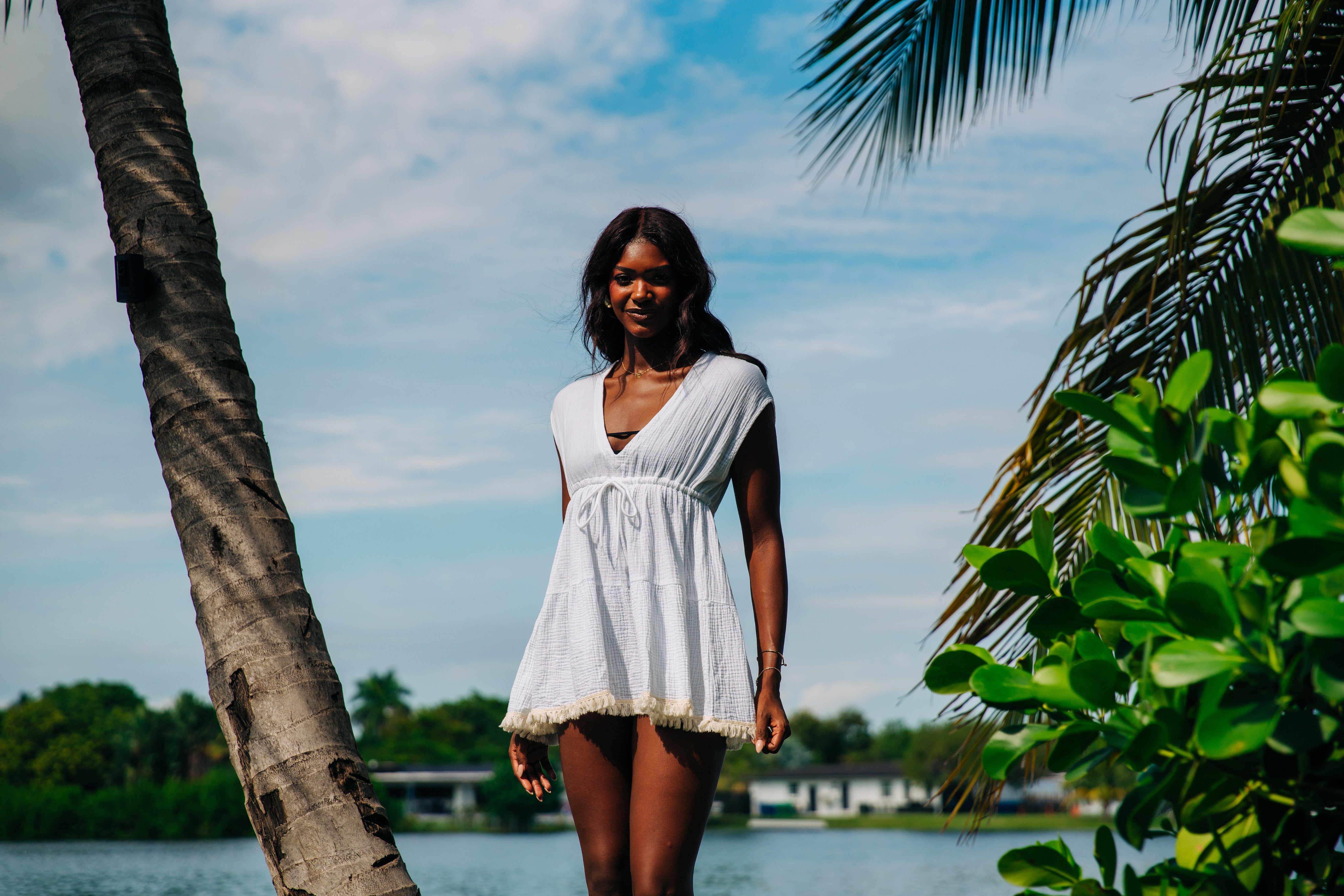 V Front Tiered Dress - White