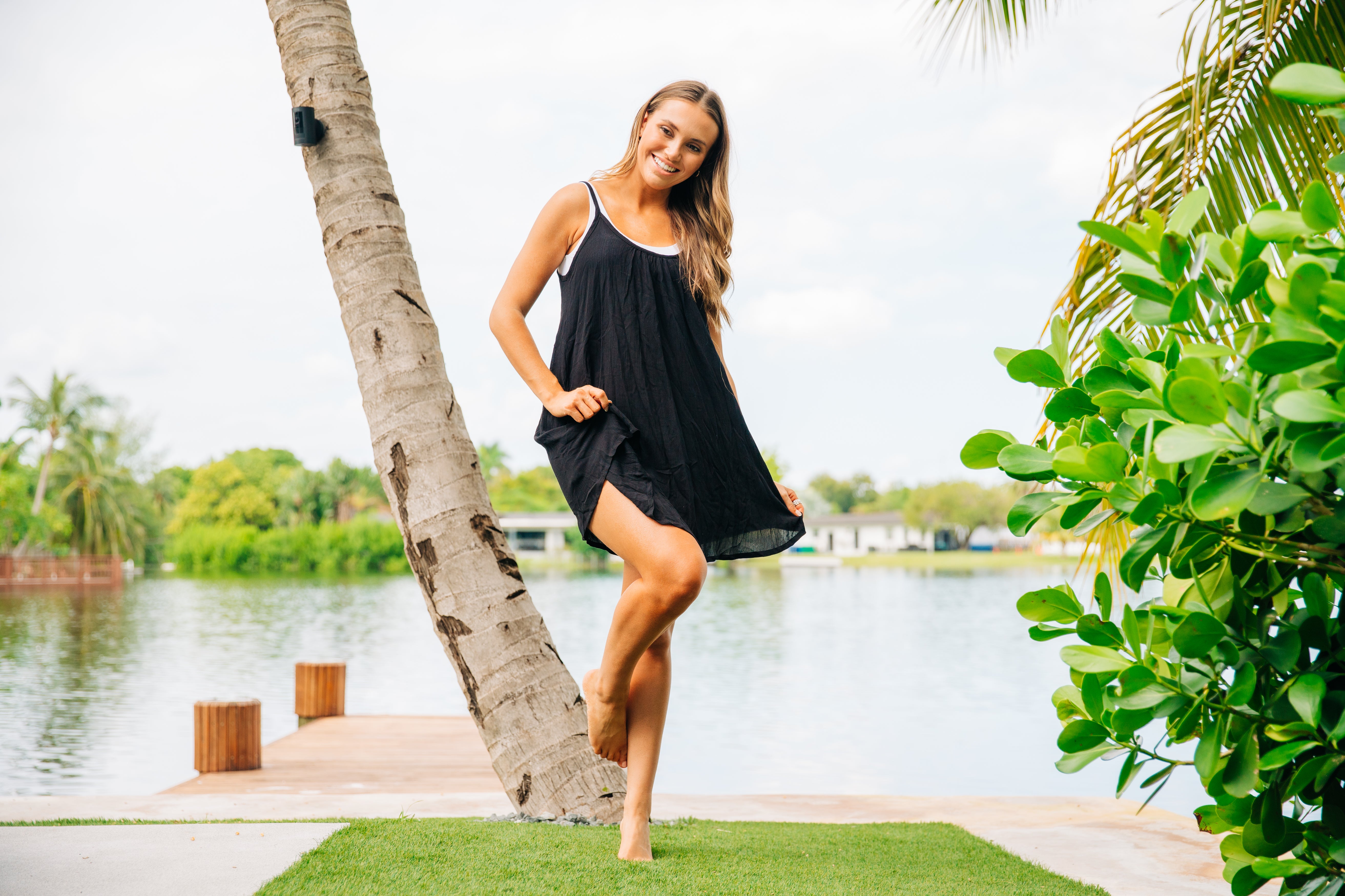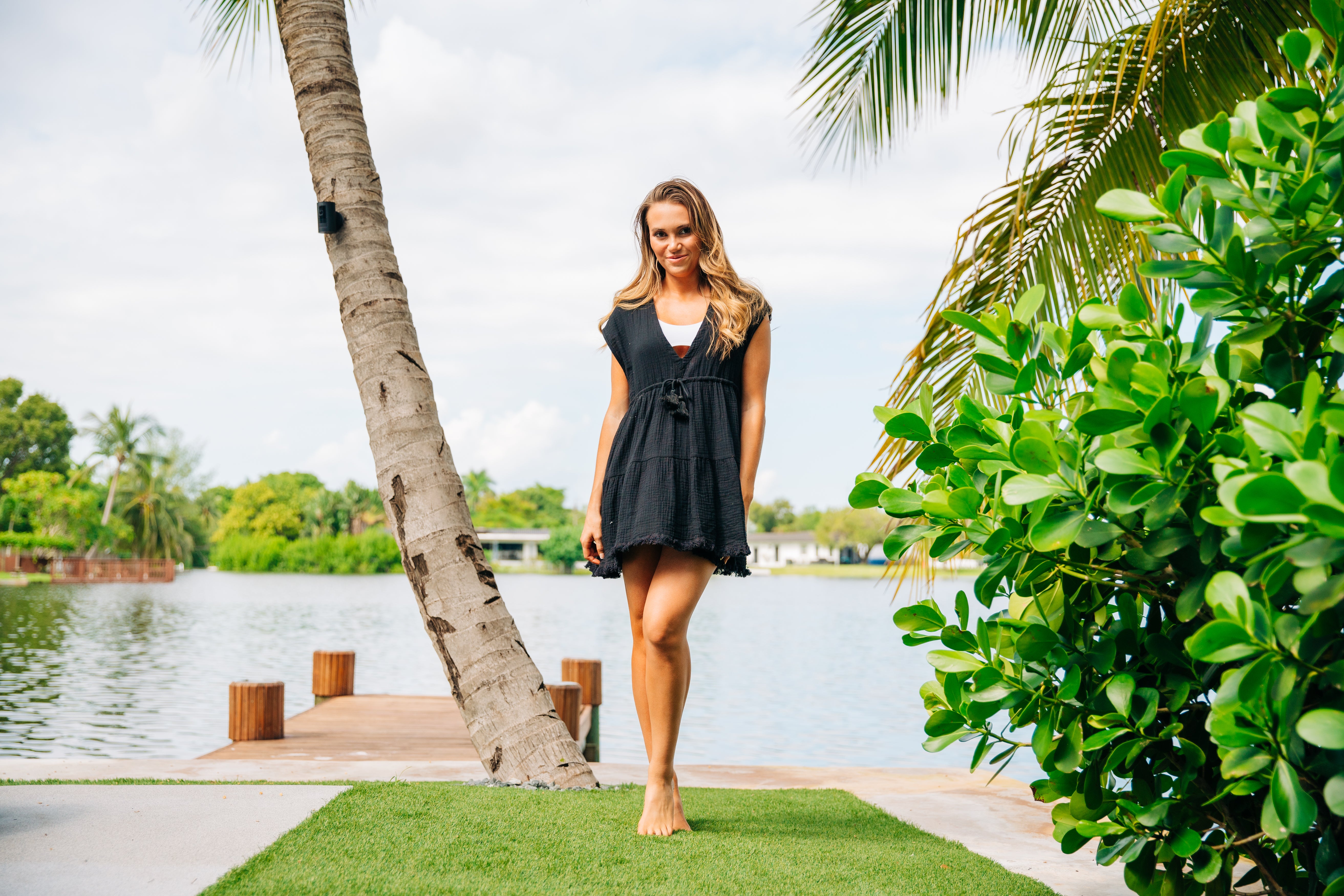 V Front Tiered Dress - Black