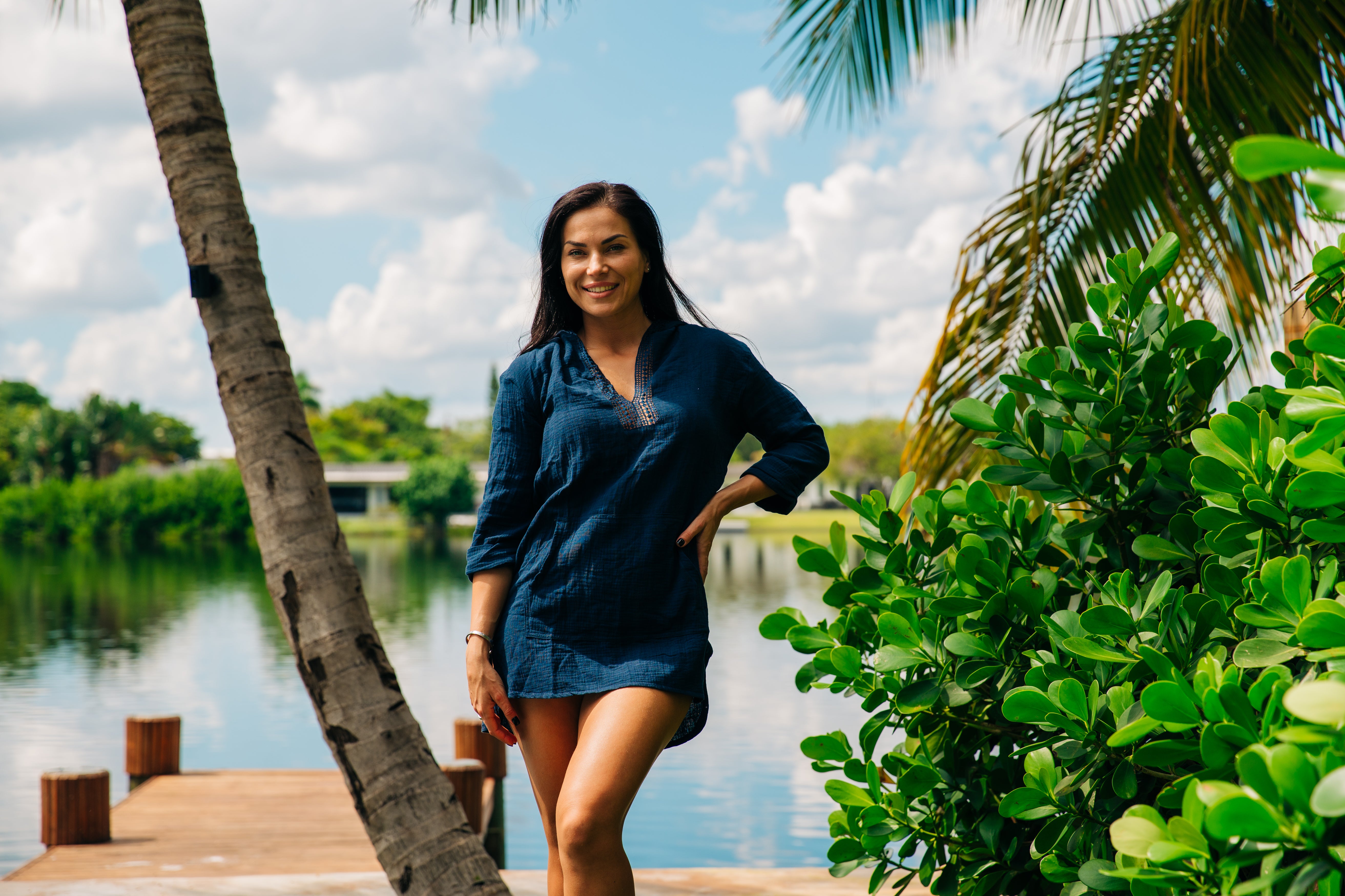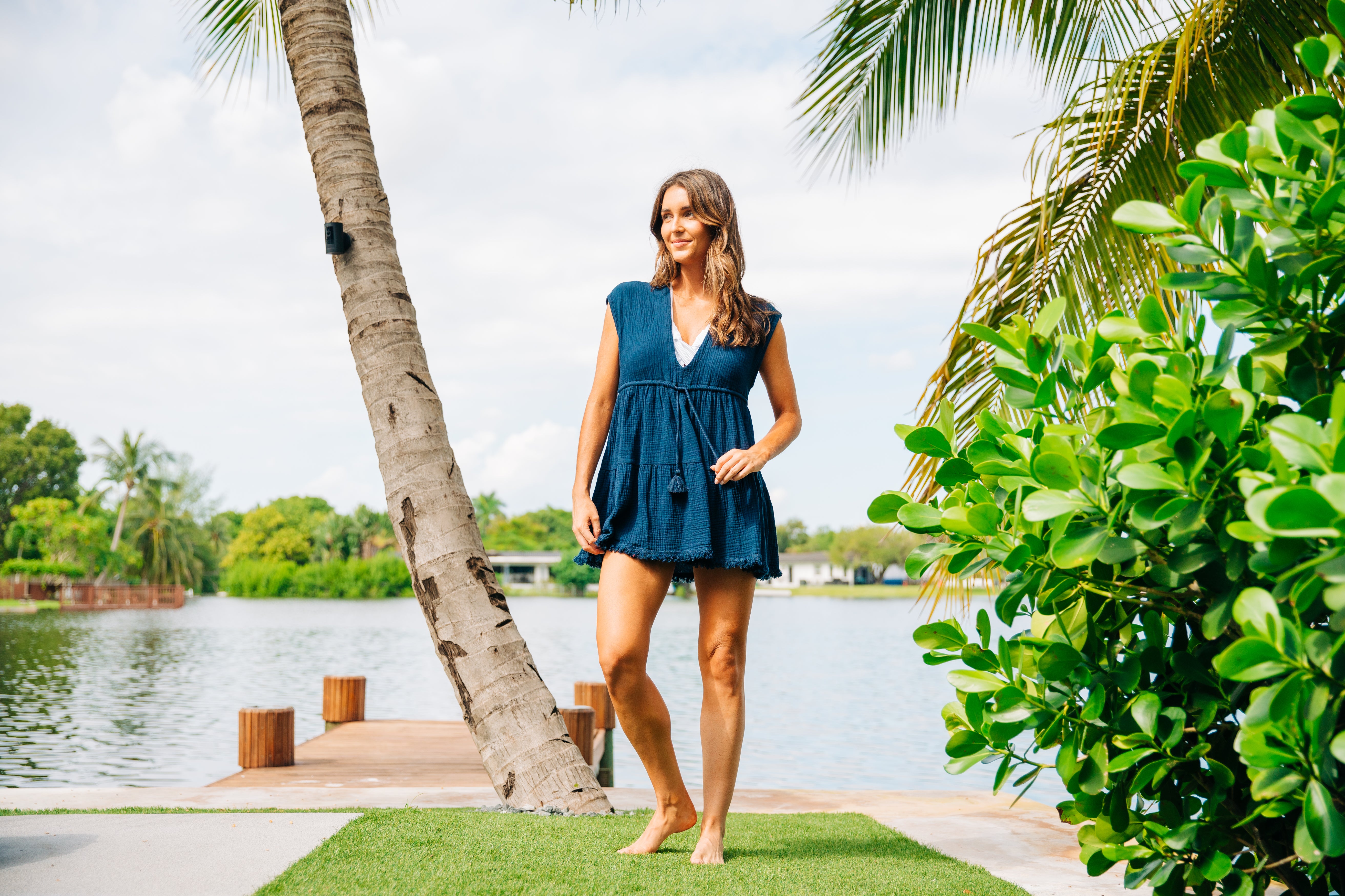 V Front Tiered Dress - Navy