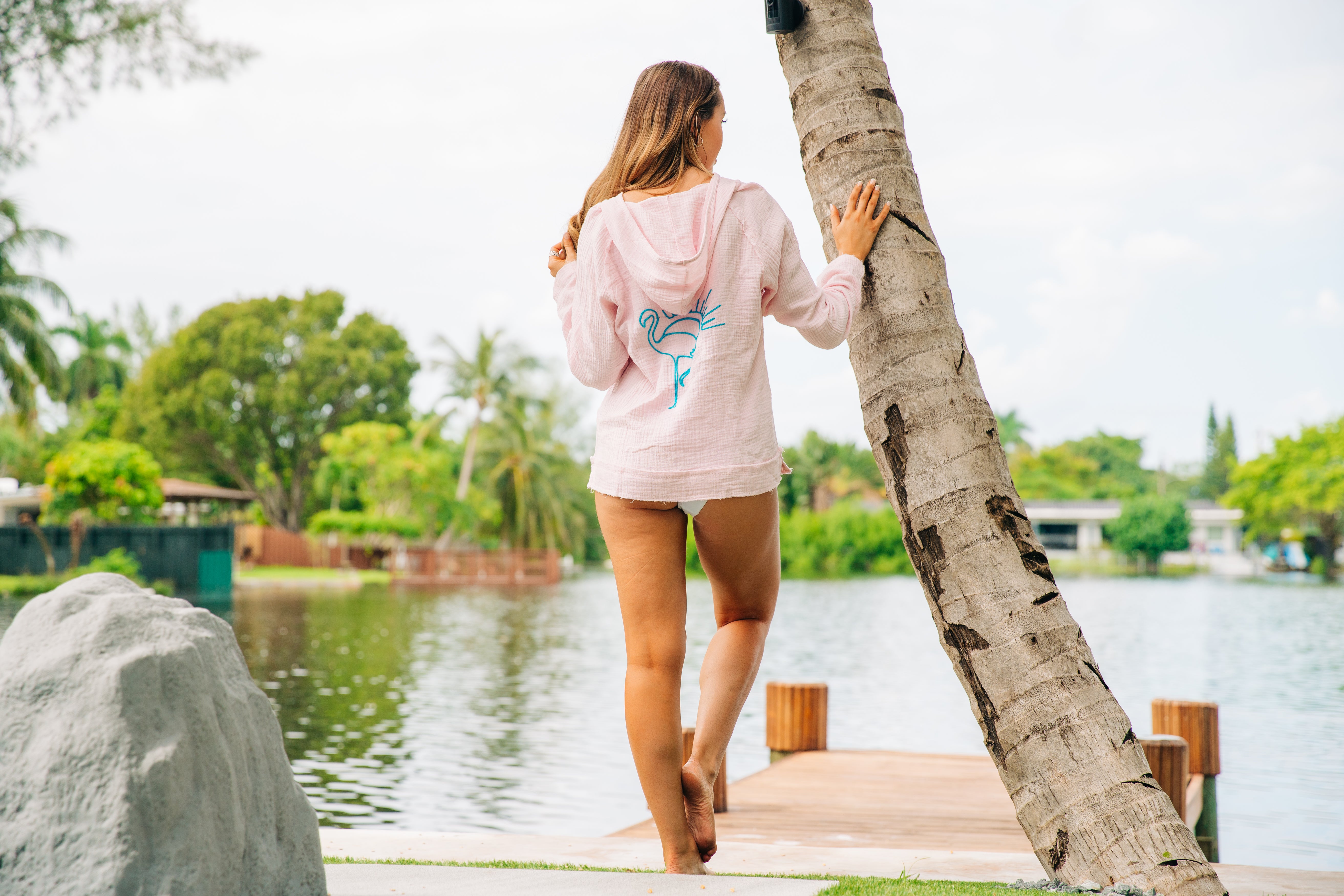 Gauze Hoodie Long Sleeve Shirt With Embroidery - Light Pink
