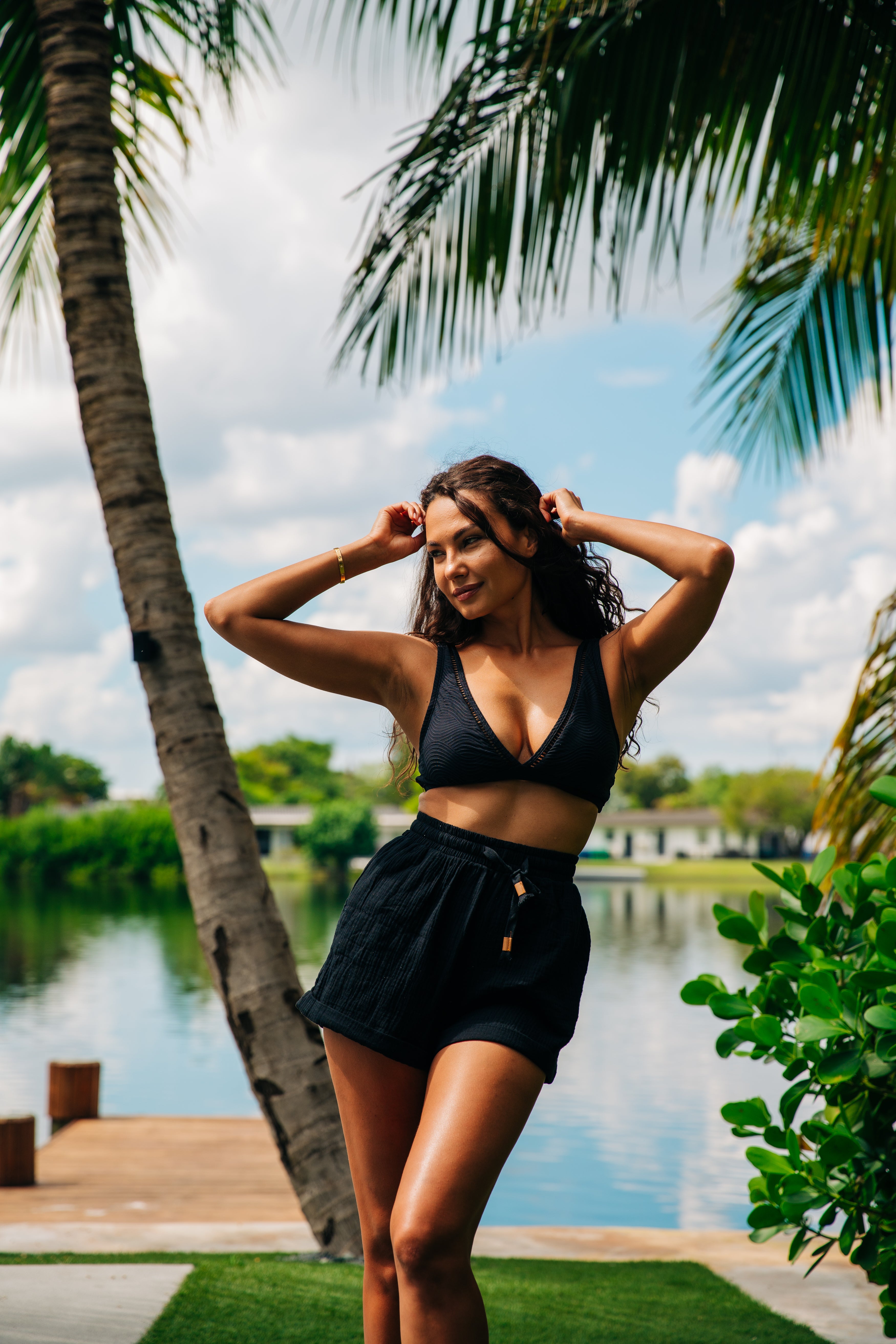Elastic Waist Gauze Short - Black
