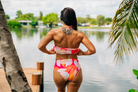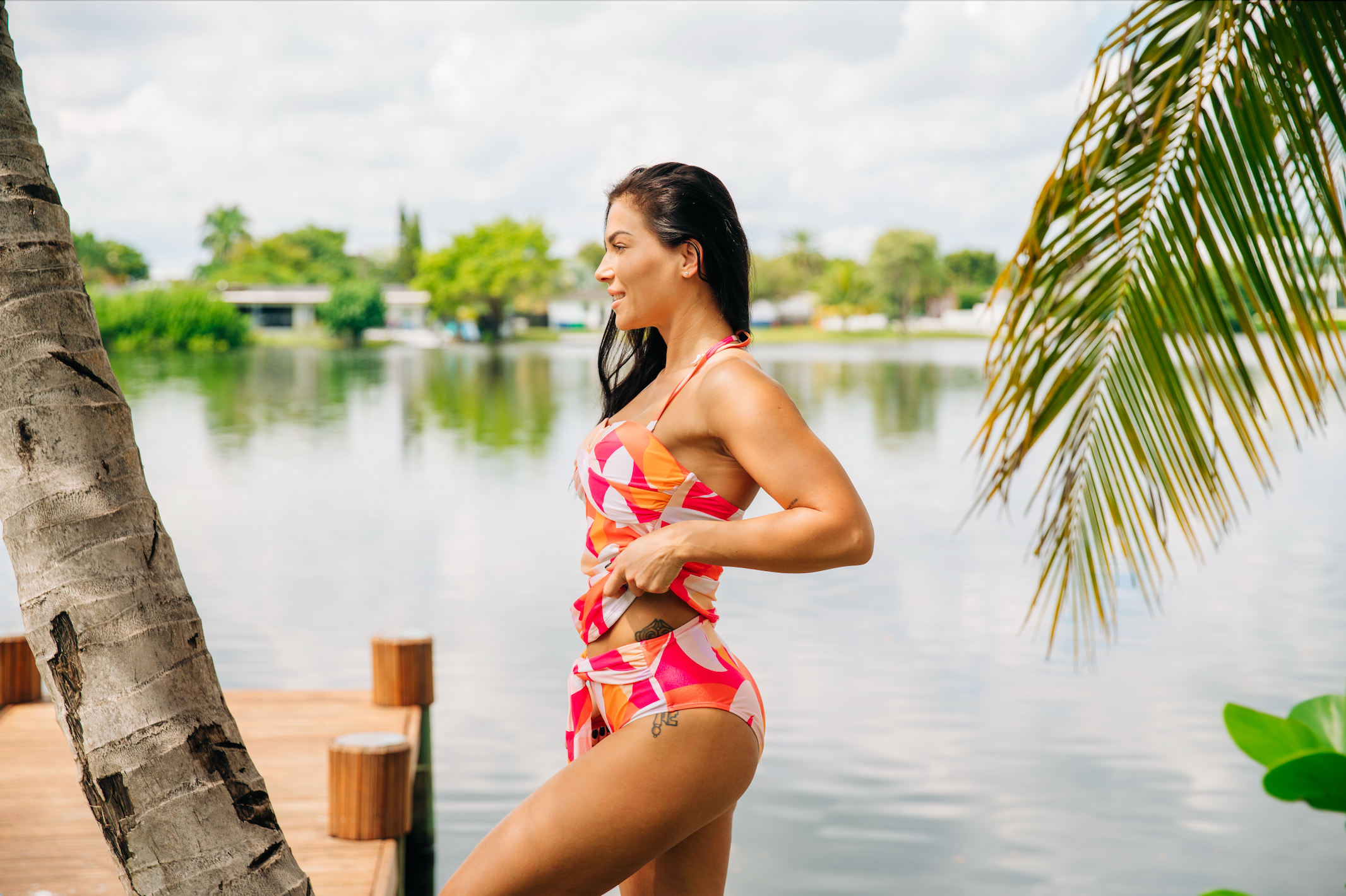 A modern blend of polish and play, this high-waisted bikini bottom features a sleek silhouette accented by a chic tie-front detail. The elevated rise smooths and flatters, while the front tie adds a soft, feminine touch without compromising clean, contemporary lines. Offering comfortable coverage and a sculpted fit, it’s a versatile piece that effortlessly pairs with any swim top for a stylish, confidence-forward look.